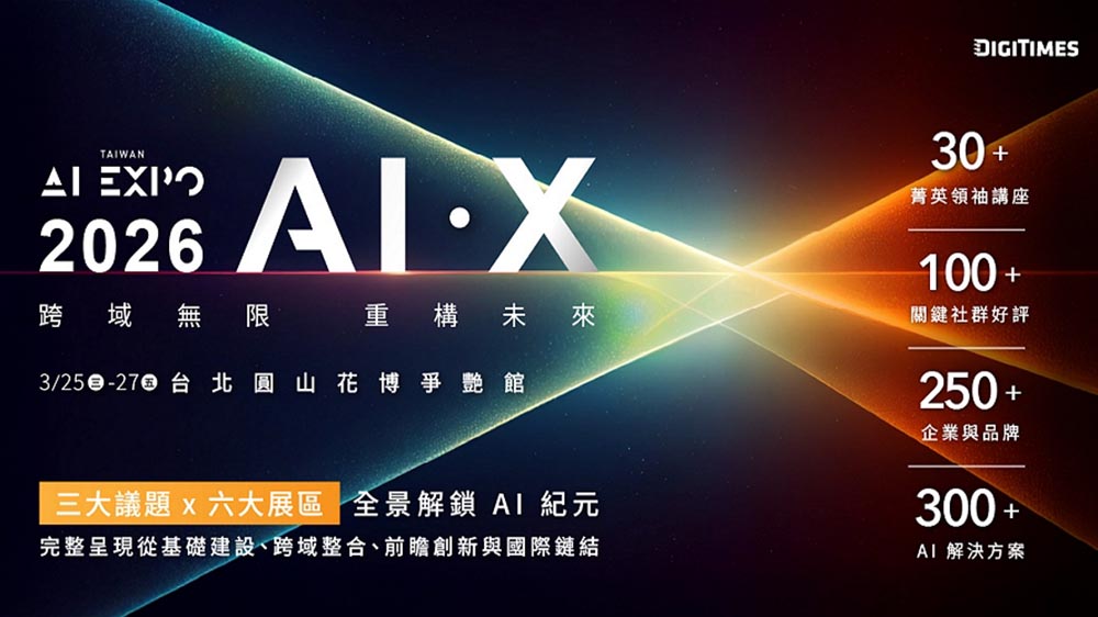 DIGITIMES Research 預估,2026 – 2030 年生成式AI 將為全球經持續帶入成長動能。為對接政府日前宣布的「AI 新十大建設」國家戰略,本屆展會以 「AI.X」 為核心主軸,重新定義產業進化軌跡,「X」不僅象徵 AI 帶來異業交會的創新加乘,更是驅動未來發展的無窮潛力與定義新紀元的全新藍圖。