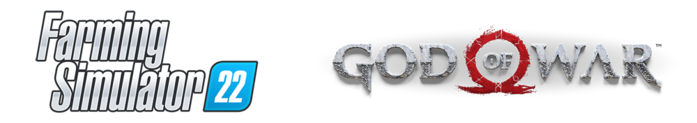 Farming Sim 22 and God of War logos