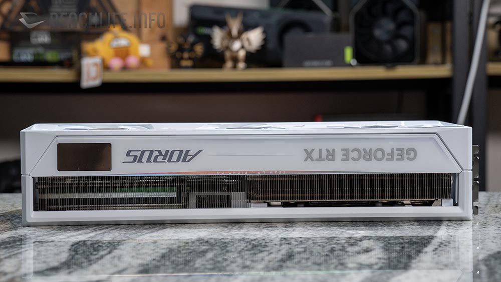 白色系的 GIGABYTE AORUS GeForce RTX 5090 STEALTH ICE 顯示卡,在外觀設計方面延續著 MASTER 系列設計,也就是說,基本的 LCD 螢幕與 RGB Halo 三環燈設計都可以在 AORUS GeForce RTX 5090 STEALTH ICE 這款顯示卡上見到。