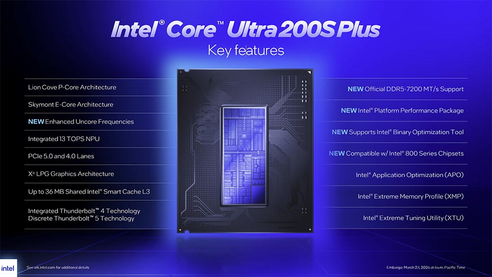 現階段 Intel 桌上型電腦用處理器市場為代號 Arrow Lake-S 的 Intel Core Ultra 200S,是在 2024 年 10 月推出;進入到 2026 年 3 月,Intel 則是推出代號 Arrow Lake-S Refresh 的 Intel Core Ultra 200S Plus 系列處理器。