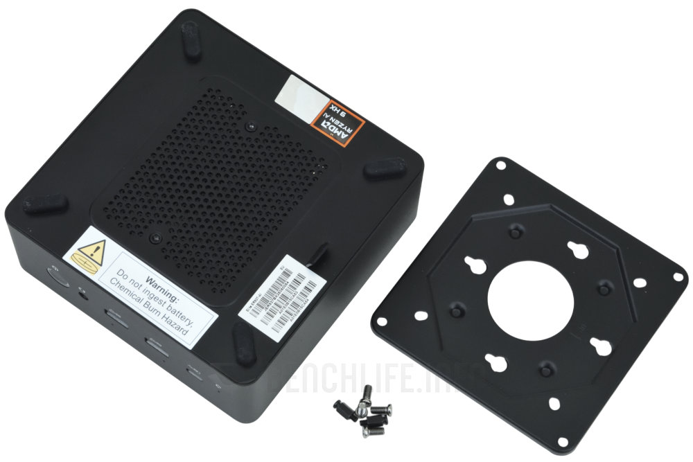 Elite ER937-AI 尺寸為 140.3 x 139.6 x 56mm、重約 935g,相當於 1.09L 的體積小巧方正,上蓋的斜條紋設計兼具通風開口作用。同樣地,它保留了 VESA 懸掛設計,能夠固定在顯示器背後節省桌面空間。