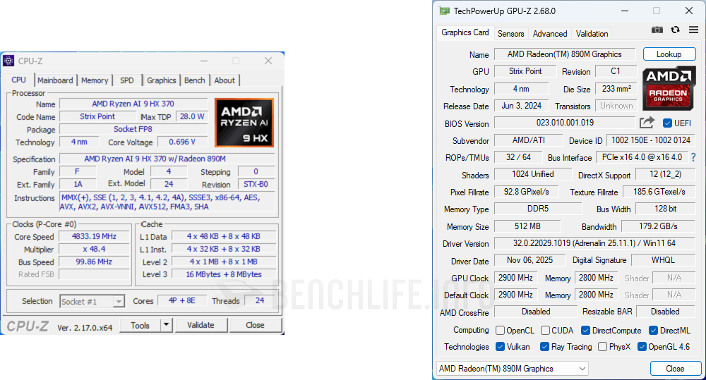 Ryzen AI 9 HX 370 所整合 Radeon 890M 內顯,具有 16 個運算單元、時脈達 2.9GHz,支援 4 顯示器輸出與豐富的解析度 / 更新頻率。另外,內建的 NPU 具有 50TOPS 算力,平台合併算力能達到 80TOPS。