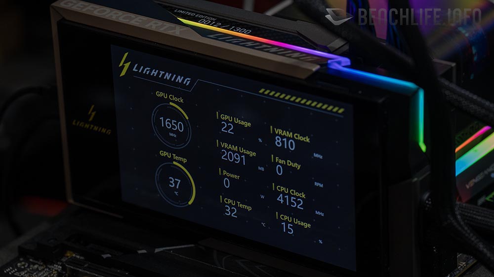 原則上,你可以將 MSI GeForce RTX 5090 Lightning Z 那塊 8 吋面板視為第二顆螢幕,就像是很多玩家很愛在機殼上安裝的外接顯示面板那般。