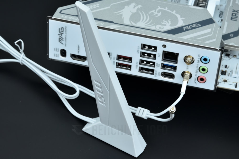 MSI 近來經常強調網路配置,賣點為傳輸速率規格超前部署,可以安然用個幾年。乙太網路使用 Realtek RTL8126 控制器,除了 2.5Gbps 更支援至 5Gbps,而 Wi-Fi 7 無線網路支援 2.4 / 5 / 6GHz 三頻、320MHz 頻寬、理論傳輸速率達 5.8Gbps,該模組是採用 MediaTek MT7927 方案。