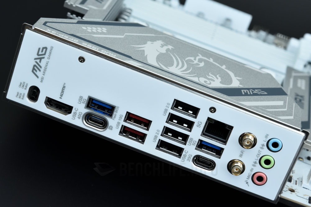 EZ DIY 設計基本涵蓋預先安裝 I/O 擋板,也具有 Flash BIOS 與 Clear CMOS 按鈕,和高階產品相比只少了 Smart 按鈕。不過基於產品定位因素,MSI 原本就選擇簡化配置元素數量,像 USB4 只提供 1 埠好在有 USB 3.2 Gen 2×2,而 USB Type-A 有一半是 USB 2.0。