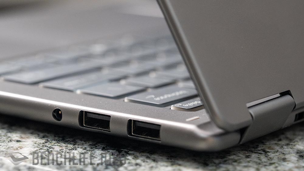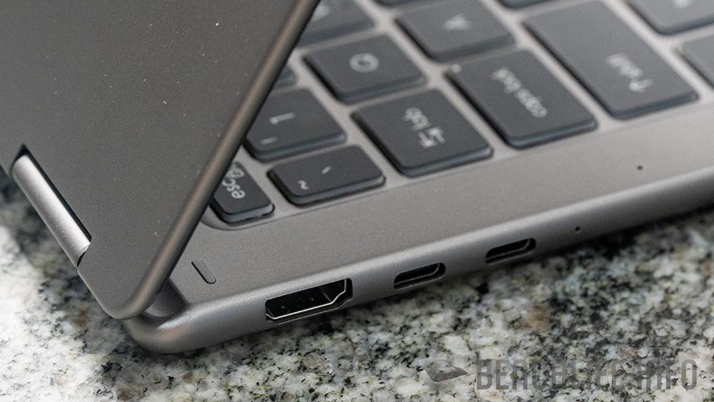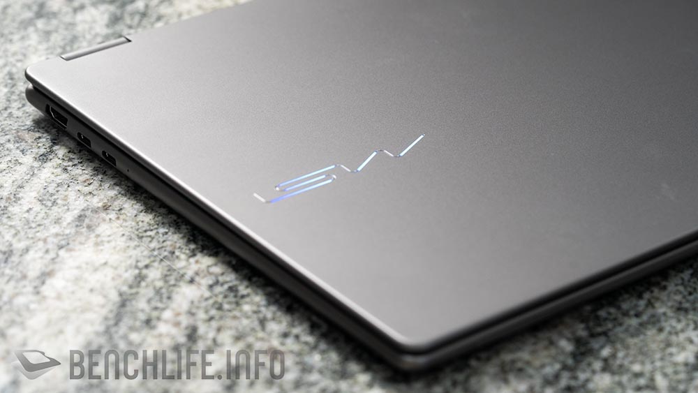 金屬機身的設計,在輕薄的前提之下,我們可以見到 2x 具 Thunderbolt 4 功能的 USB-C 以及 2x 10Gbps USB-A 連接埠。雖然,Thunderbolt 4 的 USB-C 能夠提供 DisplayPort 輸出,但筆電本身仍舊提供 HDMI 2.1 介面讓使用者可以更輕鬆將影像投影出來。