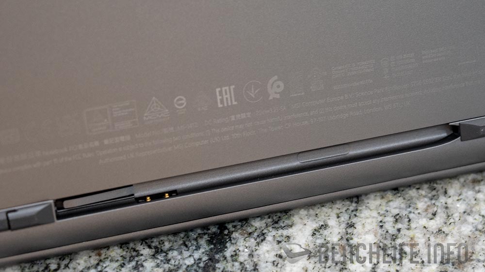 既然作為一台帶有觸控功能的 2 in 1 裝置,MSI Prestige 14 Flip AI+ D3M 搭配了 MSI Nano Pen 觸控筆,並巧妙的與機身合為一體,降低使用者忘了帶出門的困擾… 雖然,觸控筆這東西一定會有忘了帶出門的可能性…