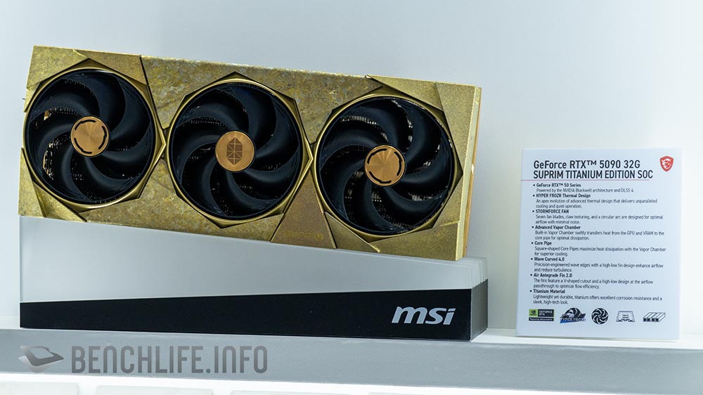 對,MSI 在 Computex 2025 展出一張採用鈦金屬(Titanium)上蓋的 GeForce RTX 5090 Suprim Titanium Edition SoC 顯示卡;必須要說,這張採用鈦金屬上蓋的 GeForce RTX 5090 真的很重。