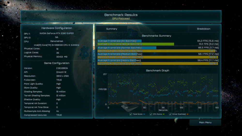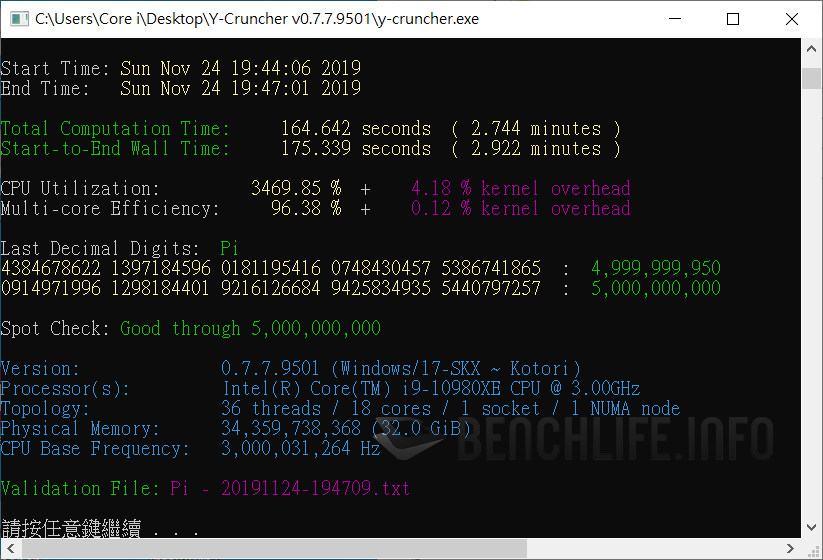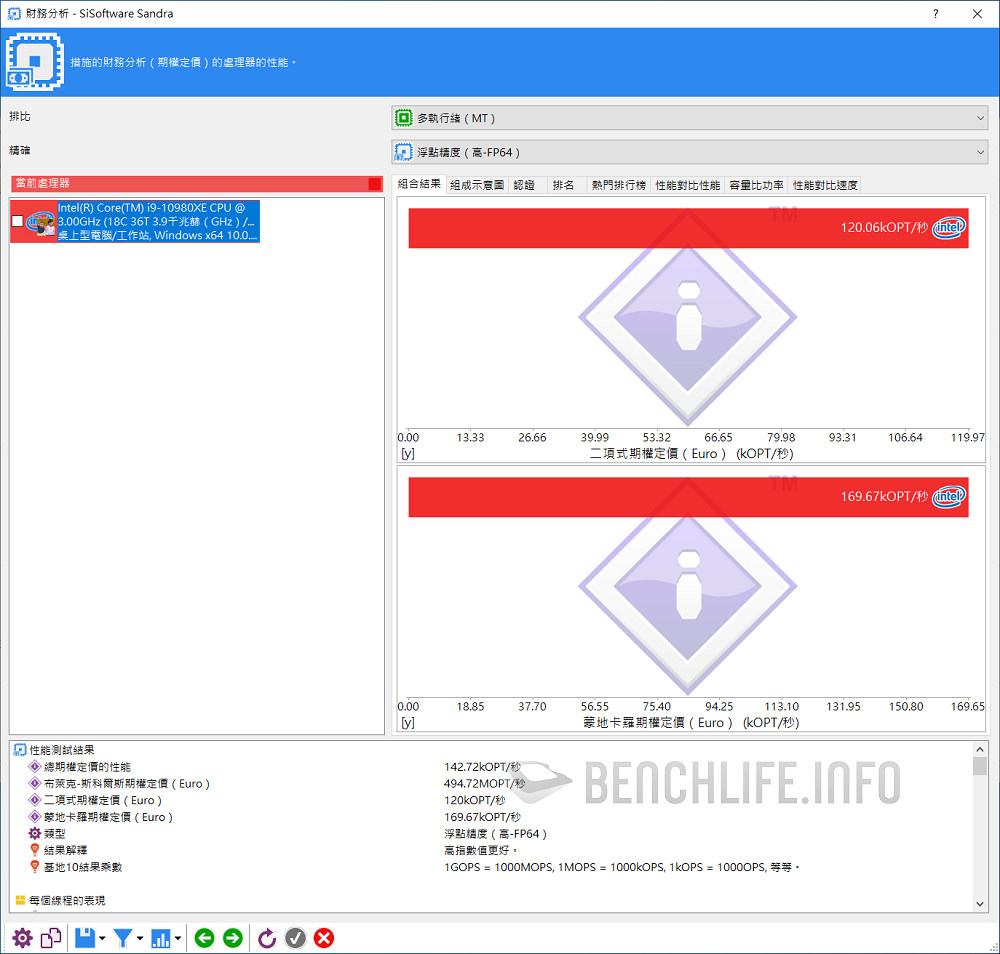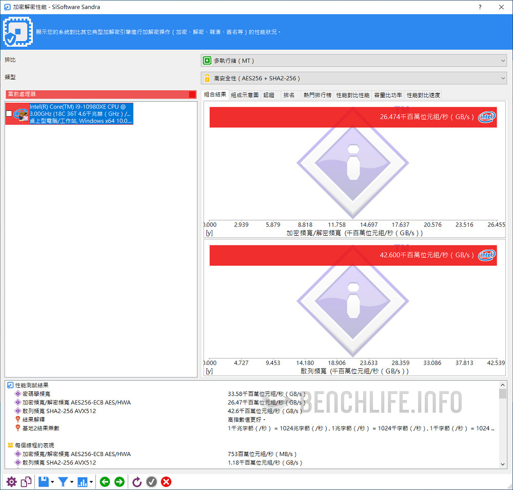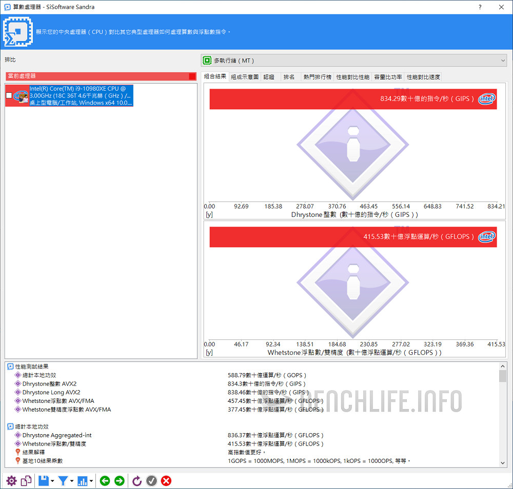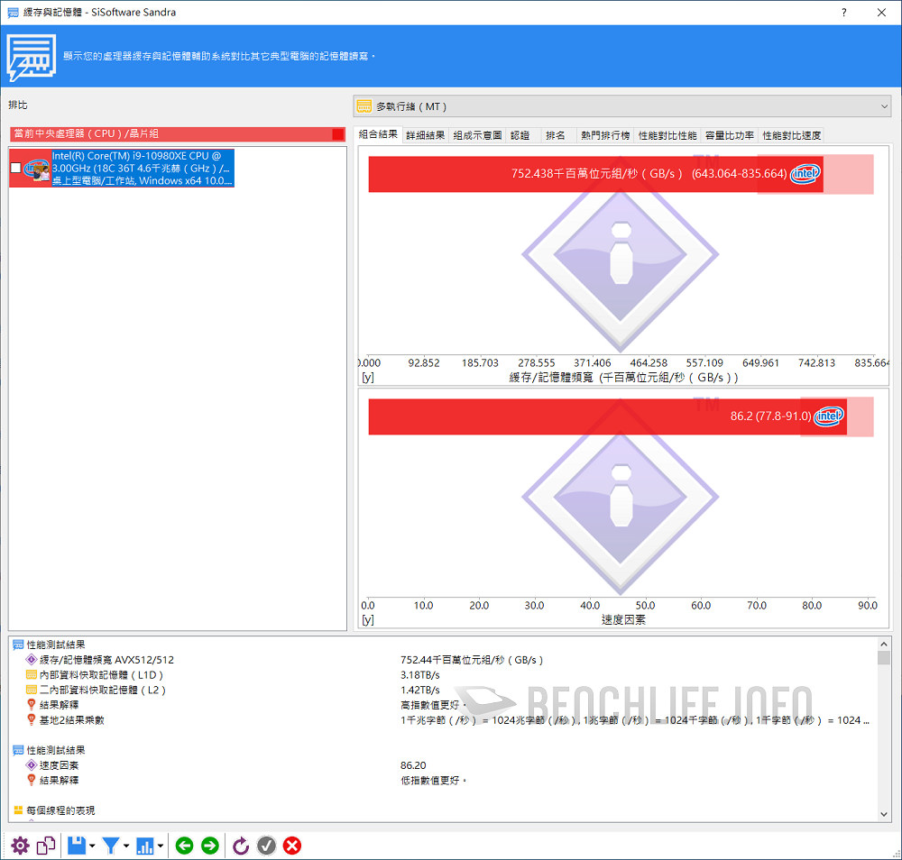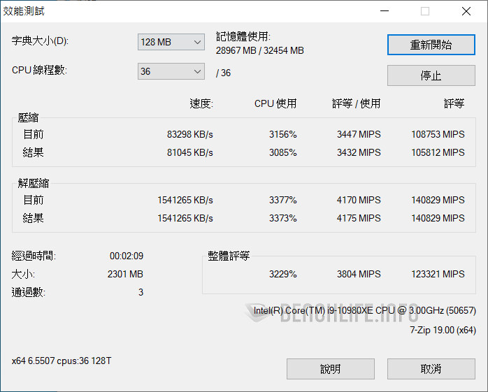 由於欠缺前代樣品無法比較性能增益,因此以下性能測試就只能讓 Core i9-10980XE 獨秀,BIOS 保守地設定以 Core i9-10980XE 預設時脈組合來進行測試,其餘設置僅開啟記憶體 XMP 功能。畢竟 18 核已經算是不少的數量,想以 Sync All Cores(全核)4.xGHz 之類組態玩耍,散熱是必須妥善規劃的一環,反觀耗電量提升相對容易搞定。