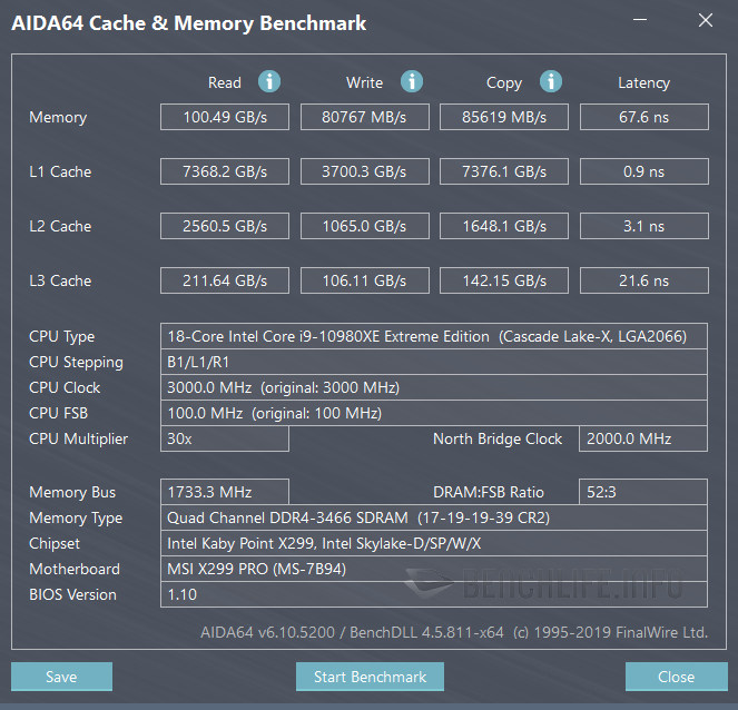 - 主機板:MSI X299 Pro(BIOS:7B94v11)