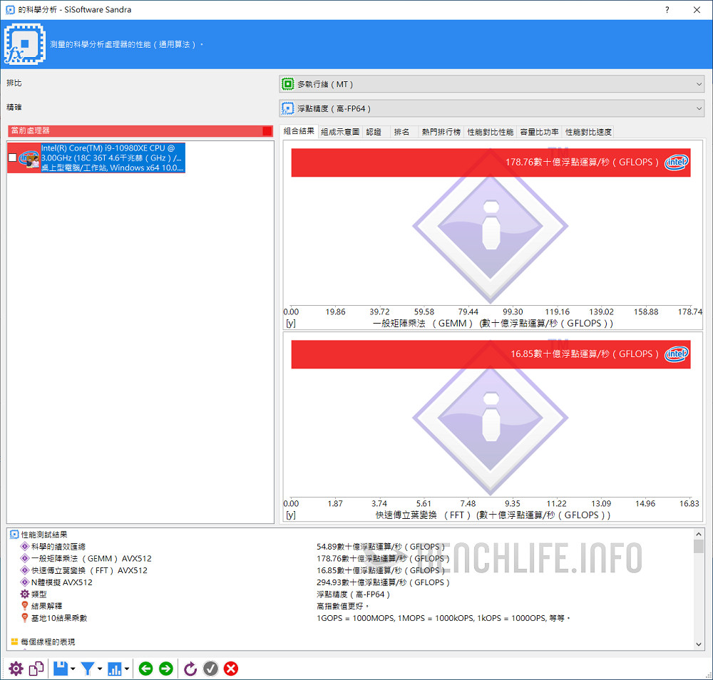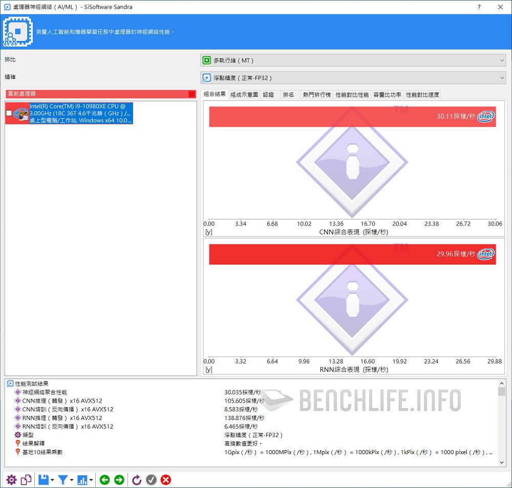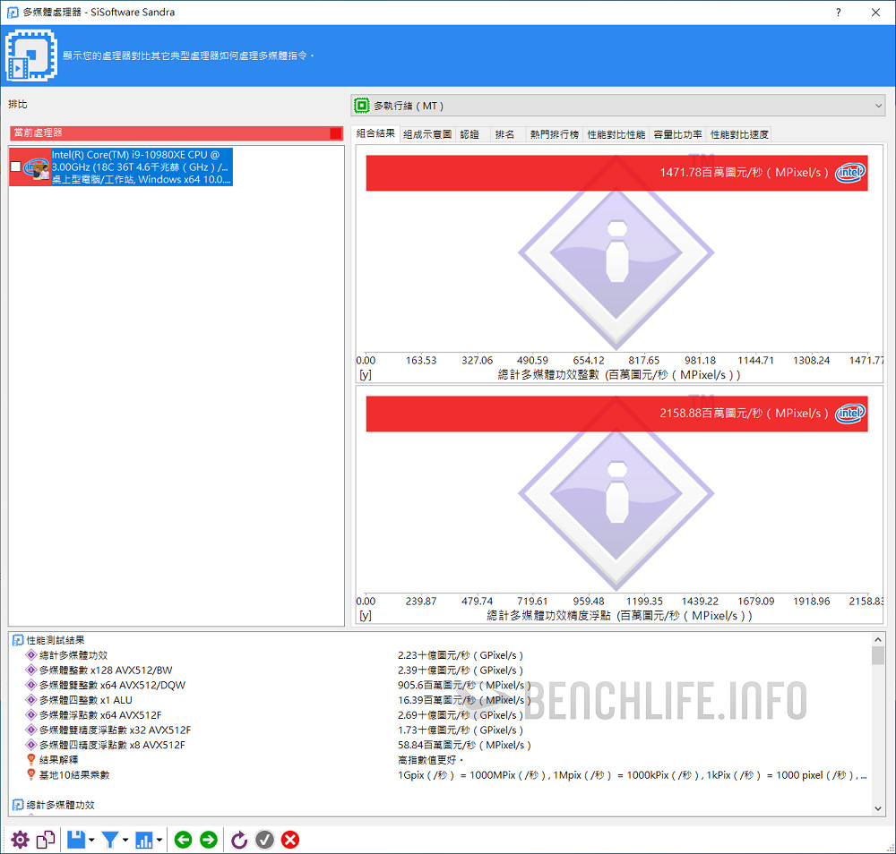 以下測試數據稍微做了分類,第一個群組內的 Sandra,正好有處理器神經網路(AI / ML)測試項目,得以窺探新一代 Core X 在這個面向的表現力。其餘也包含 PCMark 10、SYSMark 2018 等,平台綜合測試指標,供大家參考之。第二群組多為繪圖、渲染類,舉如 SPECviewperf 13、Cinebench、Blender Benchmark 等,最後的群組則為遊戲測試,畢竟這可是 Core X 的老戰場。