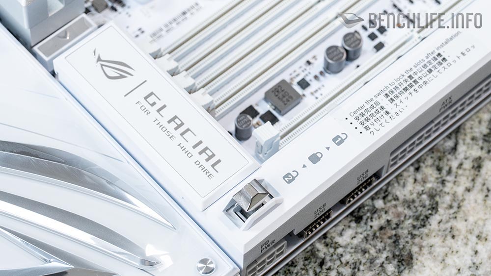 ROG Crosshair X870E Glacial 有了全新的 PCIe Q-Release Switch 設計,其搭配上 PCIe SafeSlot,讓使用者的 PCIe 裝置有著更好的保護措施。