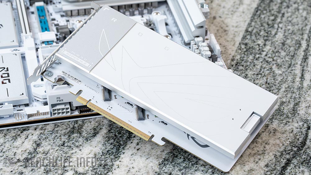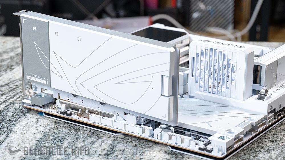 ROG Hyper M.2 Card 可以安裝 2 張 PCIe 5.0 x5 M.2 SSD,其採用的是 M.2 Q-Latch 與 M.2 Q-Release 免螺絲設計。