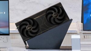 ASUS 也展出了一張雙風扇的 GeForce RTX 5090 顯示卡。